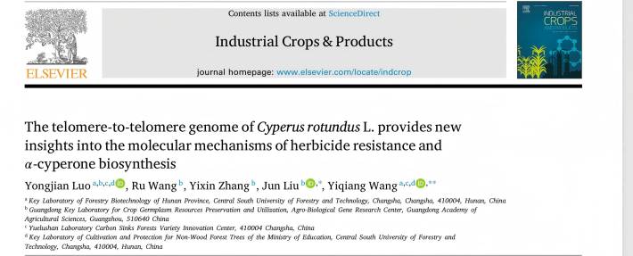 2025年7月9日,我院王义强教授团队在国际重要影响期刊《Industrial Crops & Products》(中科院,1区TOP)发表了题为"The telomere-to-telomere genome of Cyperus rotundus L. provides new insights into the molecular mechanisms of herbicide resistance and α-cyperone biosynthesis"的研究论文 (论文链接:https://doi.org/10.1016/j.indcrop.2025.121258)。