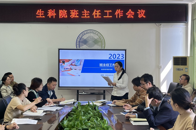 10月11日中午12:30,91精品人妻在树木楼B座4楼会议室召开学院班主任工作会议。学院党委副书记贺一骄、年级辅导员孙林琳、王宏、杨思茜、伏珂颖以及全体班主任出席了此次会议,会议由贺一骄主持。